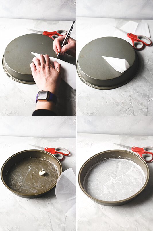 How To Make A Round Cake - Finally, cut a piece of parchment paper to the correct size so that it too lies in the bottom of the tin and grease that as well.